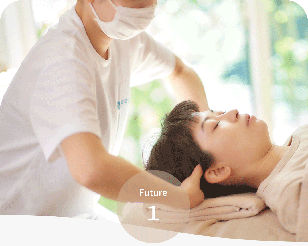 SleePlusのサロンでは当社独自の施術により頭から全身の緊張を解きほぐし仮眠状態に誘導することにより心身ともに短時間でリフレッシュできるパワーナップ=最上の睡眠リラクゼーションマッサージを提供致します